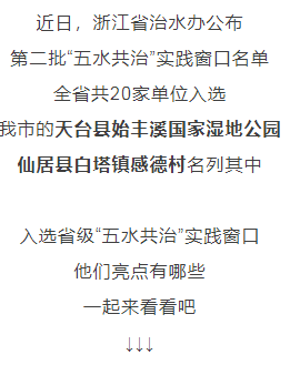 为贯彻“两山”理念,充分发挥水资源优势,天台围绕湿地建设要求,以“五水共治”工作为抓手,开展拆违还溪,关停湿地周边企业、作坊等近50家;开展退耕还湿,累计恢复江心洲、生态滩林等面积13.1万平方米;开展开挖还湖,完成内湖开挖37万立方米,河道疏浚4.7万立方米。在“治水”与“护水”齐抓共管下,始丰溪水质稳定在Ⅱ类以上,恢复清水绿岸。
